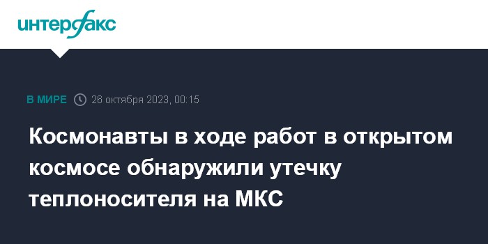 Также ранее в среду в NASA сообщили о дополнительных мерах предосторожности по завершению российского выхода в космос. Перед тем как вернуться в модуль "Поиск", космонавты осмотрят свои скафандры и инструменты на наличие следов теплоносителя, и удалят их, если потребуется. После возвращения в модуль они ещё раз очистят скафандры и инструменты.