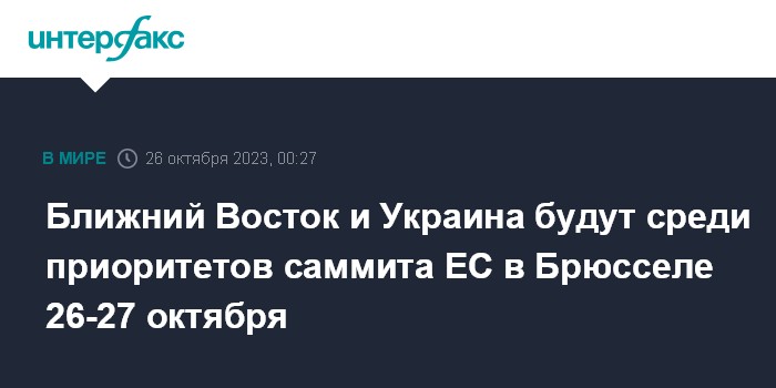 Ближний Восток и Украина будут среди приоритетов саммита ЕС в Брюсселе 26-27 октября