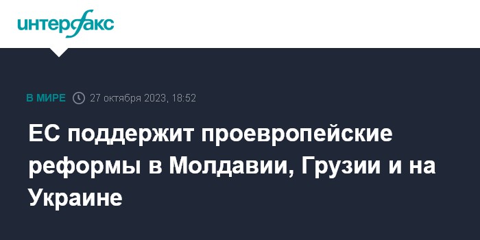 Москва. 27 октября. INTERFAX.RU - Евросоюз продолжит поддерживать Молдавию, Украину и Грузию в проведении проевропейских реформ, говорится в итоговом коммюнике саммита ЕС.