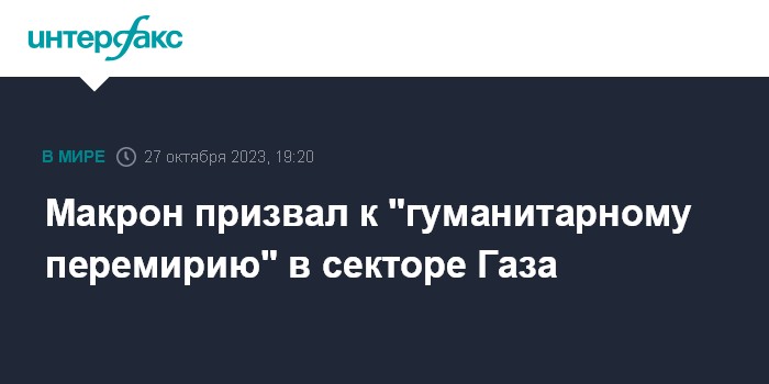 Макрон призвал к "гуманитарному перемирию" в секторе Газа