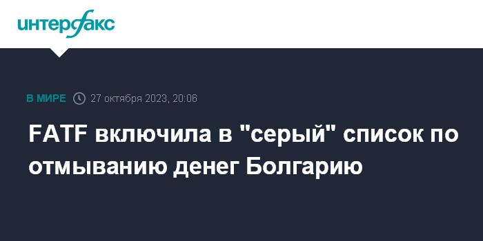 Москва. 27 октября. INTERFAX.RU - FATF (Группа разработки финансовых мер по борьбе с отмыванием денег - Financial Action Task Force) обновила "серый" список государств, находящихся на усиленном мониторинге с точки зрения отмывания денег и финансирования терроризма.