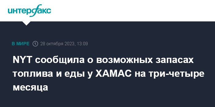 NYT сообщила о возможных запасах топлива и еды у ХАМАС на три-четыре месяца