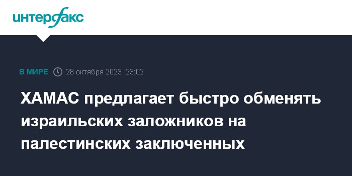 ХАМАС предлагает быстро обменять израильских заложников на палестинских заключенных