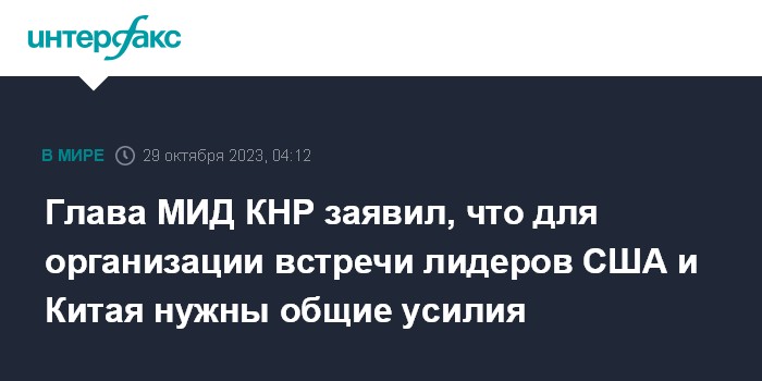 Москва. 29 октября. INTERFAX.RU - Китаю и США могут потребоваться совместные усилия, чтобы организовать встречу председателя КНР Си Цзиньпина и президента США Джо Байдена на ноябрьском саммите АТЭС в Сан-Франциско, заявил министр иностранных дел КНР Ван И.