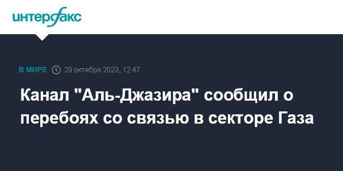 Канал "Аль-Джазира" сообщил о перебоях со связью в секторе Газа