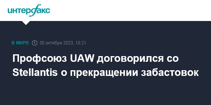 Москва. 30 октября. INTERFAX.RU - Профсоюз работников автомобильной отрасли (United Auto Workers, UAW) достиг предварительного соглашения со Stellantis NV вслед за заключением аналогичной сделки с Ford Motor Co.