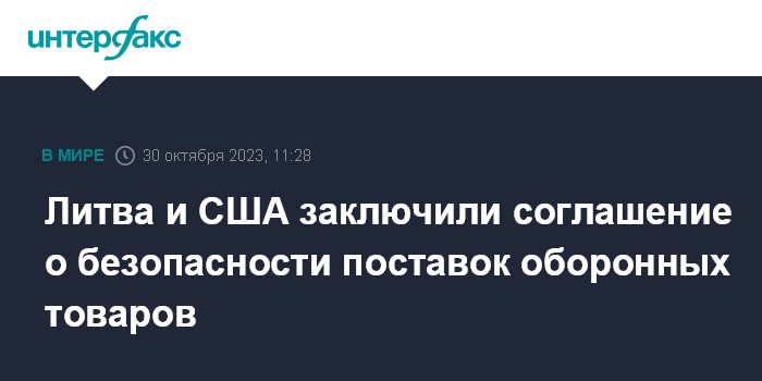 Москва. 30 октября. INTERFAX.RU - Литва и США подписали двустороннее соглашение, в соответствии с которым обе страны обязуются поддерживать друг друга в обеспечении критически важных потребностей в обороне, сообщило BNS со ссылкой на литовское Министерство обороны.