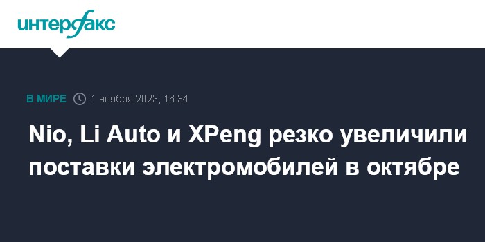 Nio, Li Auto и XPeng резко увеличили поставки электромобилей в октябре