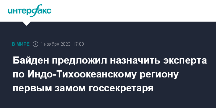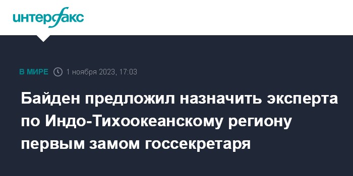 Байден предложил назначить эксперта по Индо-Тихоокеанскому региону первым замом госсекретаря