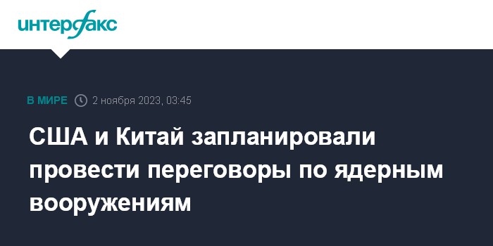 Москва. 2 ноября. INTERFAX.RU - США намерены на следующей неделе провести с Китаем переговоры по контролю над ядерными вооружениями, сообщило агентство Bloomberg со ссылкой на представителя американской администрации.