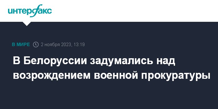 Москва. 2 ноября. INTERFAX.RU - На совещании у президента Белоруссии Александра Лукашенко в четверг обсуждается целесообразность возрождения в республике военной прокуратуры.