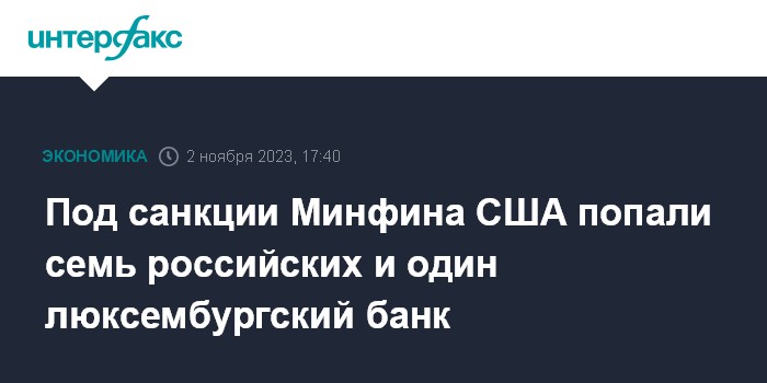 Под санкции Минфина США попали семь российских и один люксембургский банк