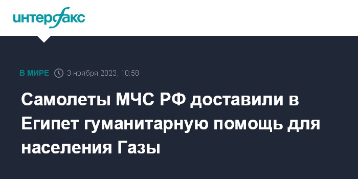 Самолеты МЧС РФ доставили в Египет гуманитарную помощь для населения Газы