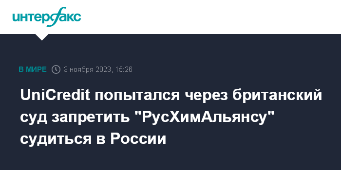 UniCredit попытался через британский суд запретить "РусХимАльянсу" судиться в России