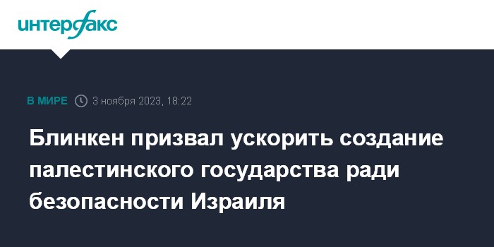Блинкен призвал ускорить создание палестинского государства ради безопасности Израиля