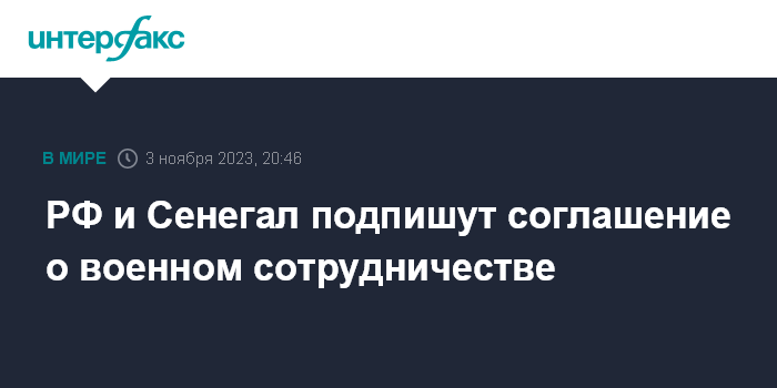 Москва. 3 ноября. INTERFAX.RU - Россия и Сенегал подпишут межправительственное соглашение о военном сотрудничестве.