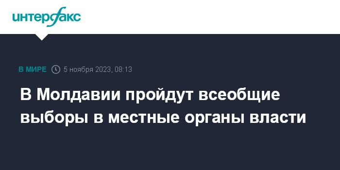 Москва. 5 ноября. INTERFAX.RU - В воскресенье в Молдавии пройдут всеобщие выборы в местные органы власти: предстоит избрать 898 мэров и 11 тыс. 058 советников местных советов, в том числе 9 тыс. 972 сельских (общинных), городских и 1 тыс. 086 районных и муниципальных советников.