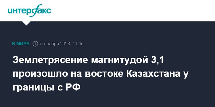 Землетрясение магнитудой 3,1 произошло на востоке Казахстана у границы с РФ