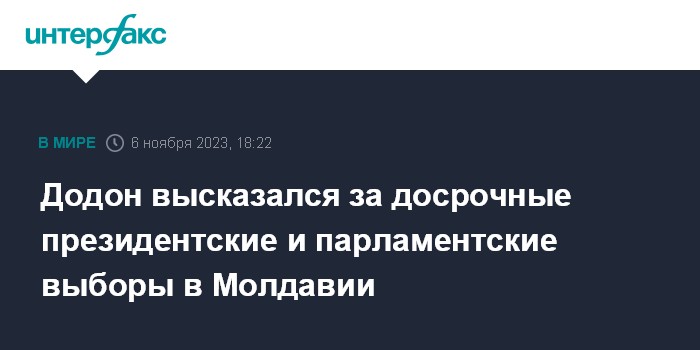 Москва. 6 ноября. INTERFAX.RU - Бывший президент Молдавии, исполнительный секретарь Партии социалистов (ПСРМ) Игорь Додон выступает за проведение досрочных президентских и парламентских выборов после состоявшихся в воскресенье выборов в местные органы власти.