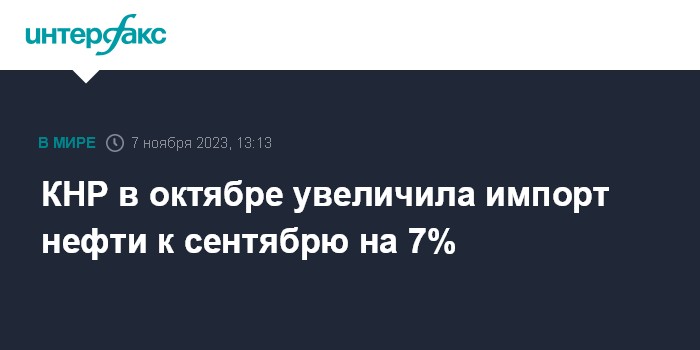 КНР в октябре увеличила импорт нефти к сентябрю на 7%