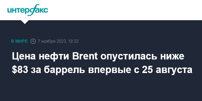 Цена нефти Brent опустилась ниже $83 за баррель впервые c 25 августа