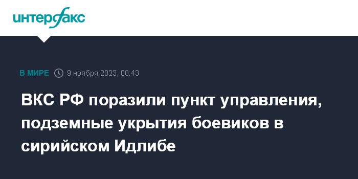 ВКС РФ поразили пункт управления, подземные укрытия боевиков в сирийском Идлибе