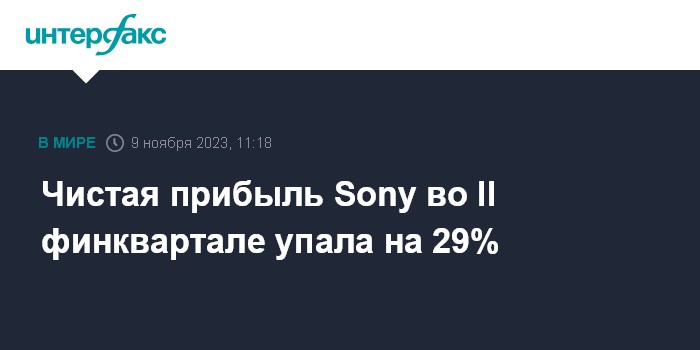 Москва. 9 ноября. INTERFAX.RU - Японская Sony Corp. во втором квартале 2023 финансового года сократила чистую прибыль на 29%, при этом результат не оправдал ожиданий аналитиков.