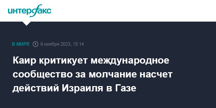 Каир критикует международное сообщество за молчание насчет действий Израиля в Газе