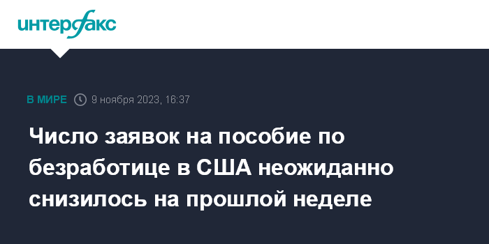 Число заявок на пособие по безработице в США неожиданно снизилось на прошлой неделе