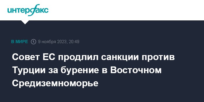 Совет ЕС ввел 11 ноября 2019 года ограничения ввиду несанкционированной деятельности Турции по бурению в Восточном Средиземноморье, отмечается в коммюнике.