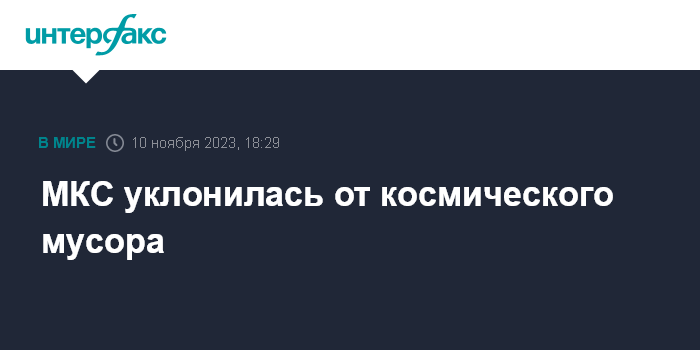 Москва. 10 ноября. INTERFAX.RU - Грузовой корабль "Прогресс МС-24" в пятницу увел Международную космическую станцию (МКС) от столкновения с космическим мусором, сообщили "Роскосмосе".