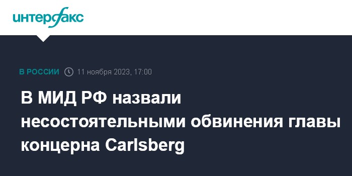 Москва. 11 ноября. INTERFAX.RU - В МИД РФ назвали несостоятельными обвинения главы концерна Carlsberg Якоба Ааруп-Андерсена относительно бизнеса в России.