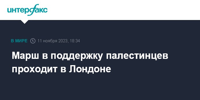 Москва. 11 ноября. INTERFAX.RU - В центре Лондона в субботу проходит марш в поддержку палестинцев и за прекращение огня в секторе Газа, передают британские СМИ.
