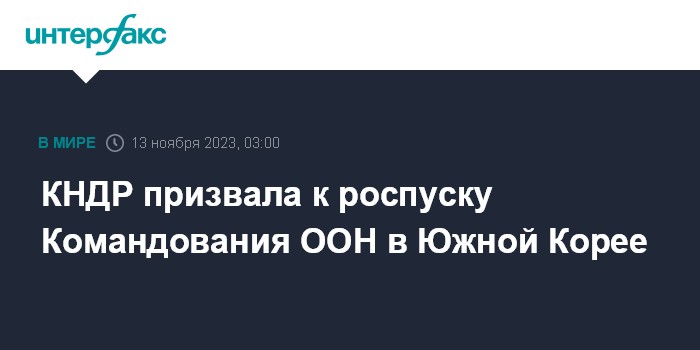 Москва. 13 ноября. INTERFAX.RU - КНДР заявила, что Командование ООН в Южной Корее должно быть распущено для сохранения мира на Корейском полуострове.
