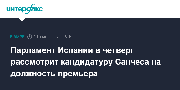 "Исполняющий обязанности премьер-министра и лидер Испанской социалистической рабочей партии (ИСРП) Педро Санчес выступит на дебатах на заседании парламента 15 и 16 ноября", - передает RTVE.
