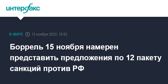 Боррель 15 ноября намерен представить предложения по 12 пакету санкций против РФ