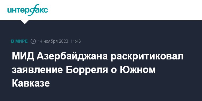 Москва. 14 ноября. INTERFAX.RU - МИД Азербайджана подверг жесткой критике заявление главы дипломатии Евросоюза Жозепа Борреля, касающееся ситуации на Южном Кавказе.