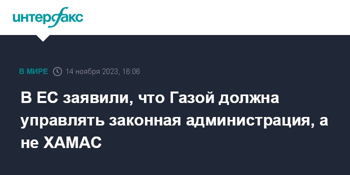 В ЕС заявили, что Газой должна управлять законная администрация, а не ХАМАС