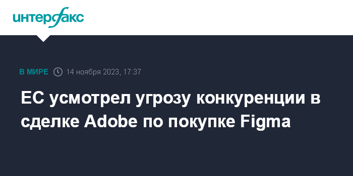 Британский регулятор, завершивший предварительную проверку сделки в июне, также пришел к выводу, что она может "существенно ослабить конкуренцию". Кроме того, источники западных СМИ сообщали о том, что министерство юстиции США готовит иск для блокировки сделки Adobe и Figma.