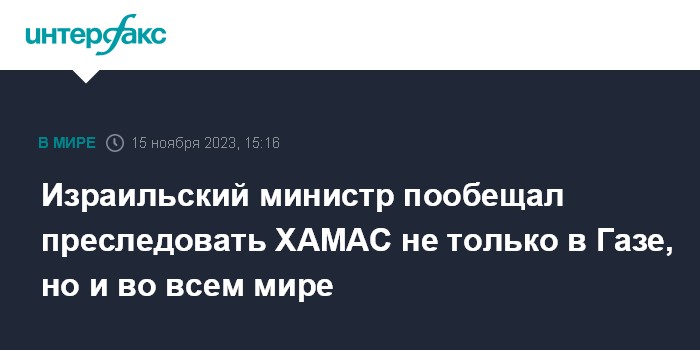 Израильский министр пообещал преследовать ХАМАС не только в Газе, но и во всем мире