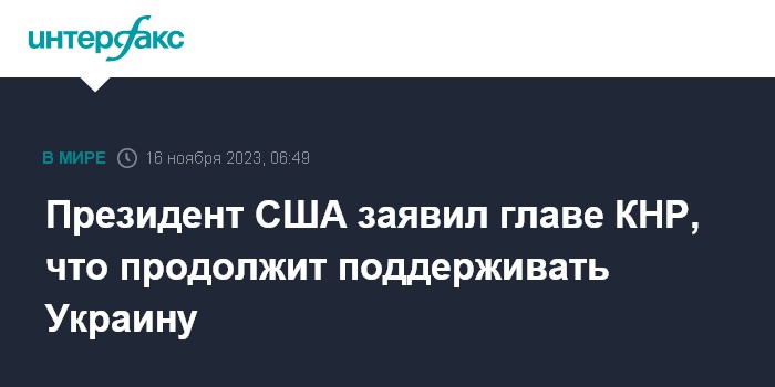 Москва. 16 ноября. INTERFAX.RU - Президент США Джо Байден в ходе состоявшихся переговоров с председателем КНР Си Цзиньпином заявил, что Соединенные Штаты будут продолжать поддержку Украины, говорится в пресс-релизе Белого дома по итогам переговоров.