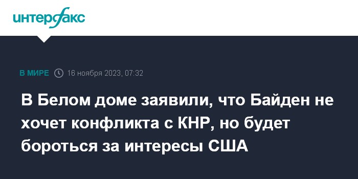В Белом доме заявили, что Байден не хочет конфликта с КНР, но будет бороться за интересы США