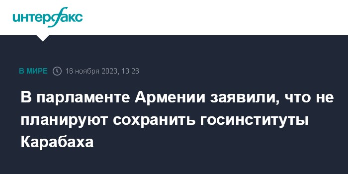 В парламенте Армении заявили, что не планируют сохранить госинституты Карабаха