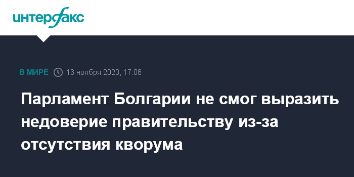 Москва. 16 ноября. INTERFAX.RU - Парламентское голосование о недоверии болгарскому правительству отложено в четверг ввиду отсутствия кворума, сообщает Болгарское национальное радио.