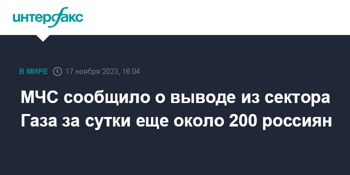 МЧС сообщило о выводе из сектора Газа за сутки еще около 200 россиян