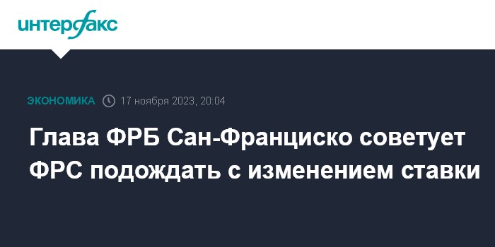 Глава ФРБ Сан-Франциско советует ФРС подождать с изменением ставки