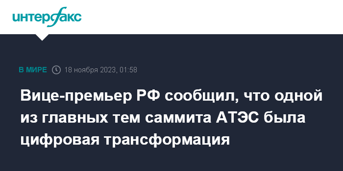 Вице-премьер РФ сообщил, что одной из главных тем саммита АТЭС была цифровая трансформация
