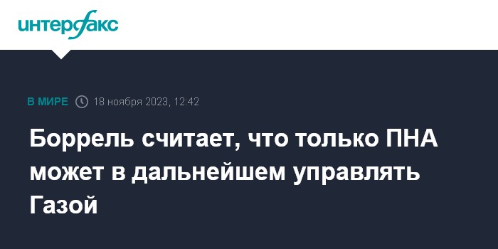 Москва. 18 ноября. INTERFAX.RU - Управление сектором Газа после завершения там израильской военной операции должно перейти к Палестинской национальной администрации (ПНА), заявил глава дипломатии Евросоюза Жозеп Боррель.
