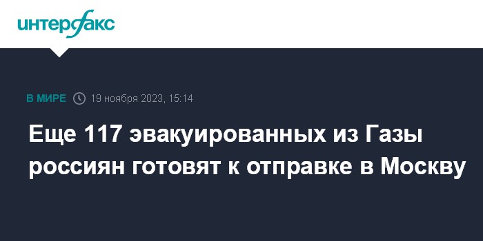 Еще 117 эвакуированных из Газы россиян готовят к отправке в Москву