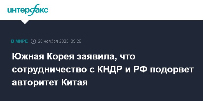 Южная Корея заявила, что сотрудничество с КНДР и РФ подорвет авторитет Китая